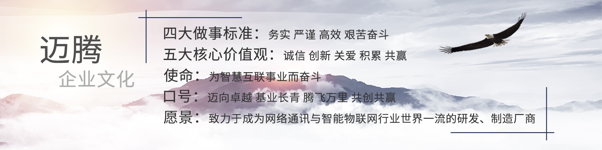 深圳市邁騰電子有限公司(簡稱邁騰),成立于2008年2月,是一家專注于網(wǎng)絡通訊與物聯(lián)網(wǎng)產(chǎn)品開發(fā)、生產(chǎn)、銷售及服務為一體的國家級高科技企業(yè)。目前是國、內(nèi)外網(wǎng)絡通訊與物聯(lián)網(wǎng)行業(yè)前列的研發(fā)、制造廠商。